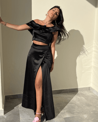 Introducing the "Santorini Set" – a captivating silk ensemble crafted with Lycra. Designed to fit sizes S to L, this two-piece set exudes allure and sophistication, making it the perfect choice for a wedding or any special occasion. Elevate your style with this glamorous and versatile ensemble, inspired by the timeless elegance of Santorini.