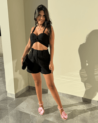 Introducing the "Barnie Set" - the ultimate blend of comfort and style. This two-piece linen ensemble, designed to fit sizes small to medium, offers effortless elegance for any occasion. Crafted from luxurious linen fabric, the set includes a relaxed-fit top and coordinating bottoms, both perfect for warm weather days or casual outings. Elevate your wardrobe with the timeless charm of the Barnie Set, your new go-to ensemble for chic, laid-back style.