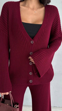 Trendy Wool Ribbed V-Neck Set