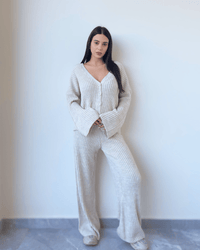 Step up your winter style with our Wool Ribbed V-Neck Set, a chic and cozy ensemble perfect for any occasion. Featuring a trendy ribbed texture, this matching set includes a flattering V-neck sweater and coordinating pants, combining comfort with modern elegance.