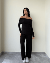 Stay warm and stylish with the Lana Wool Set! Made from soft mohair wool, it features a cozy folded off-shoulder top for an effortlessly chic look. Perfect for all your winter outings.