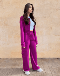 Introducing our Cleo set, crafted for the modern woman who values comfort and style. Made from French terry 220gram breathable cotton, this set exudes luxury and versatility. Pants with an adjustable design, allowing you to switch between a tight or wide leg fit for personalized comfort. Paired with a matching hoodie jacket, this ensemble offers the perfect blend of functionality and fashion. Whether you're lounging at home or running errands, the Ruby set ensures you stay cozy and chic all day long. Elevate your wardrobe with this essential ensemble that redefines comfort in style.
