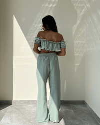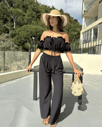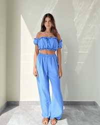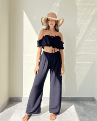 Introducing the **Anastasia Linen Premium Set**, a luxurious and sophisticated ensemble designed for those who appreciate both style and comfort. This set features an adjustable, sexy crop top and matching pants, perfect for any occasion.