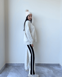 The subtle striped design adds a modern touch, while the relaxed fit ensures all-day comfort. Whether you're lounging at home, running errands, or meeting friends, this versatile set is your ultimate winter staple.