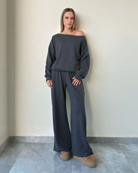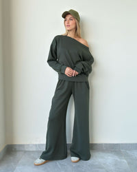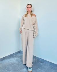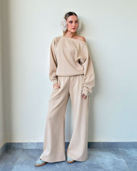 Paired with wide-leg pants, it delivers a relaxed yet elegant look perfect for lounging, casual outings, or travel.