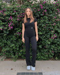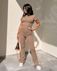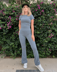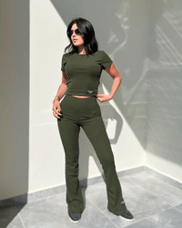 Introducing our Liam Set: Curves in our flared tight leggings, featuring a comfortable 8-inch waistband that molds to your body shape. Paired with a cropped t-shirt designed to accentuate your figure, this set combines comfort and style effortlessly, ensuring you feel confident and chic wherever you go.
