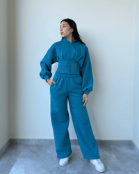 Maddie Fleece corset-inspired top hugs your body, accentuating your natural shape, while the oversized sweatpants provide a relaxed and trendy contrast. Made from premium fleece fabric, this set delivers warmth and softness without compromising on style.