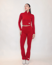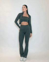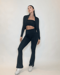 Meet the perfect 3-piece set designed for style and versatility. Featuring wide-leg leggings, a banana-cut crop top, and a matching jacket, this set is made to elevate your everyday look. Whether you're stepping out or lounging in style, its flattering fit and soft fabric make it a must-have.