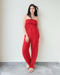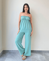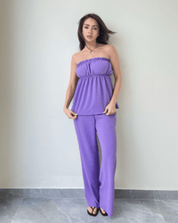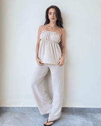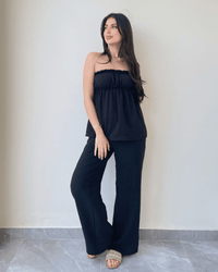 Embrace effortless elegance with our Strapless Set — featuring a flowy, ruched bandeau top and matching wide-leg pants. Designed with comfort and chicness in mind, this lightweight set is perfect for sunny days, relaxed getaways, or stylish lounging. Easy to dress up with heels or keep casual with slides — your new go-to summer essential.