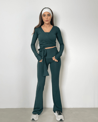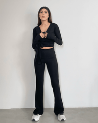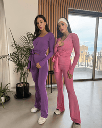 Designed for movement, comfort, and effortless style, the Liana Set is the ultimate trending set for Pilates and beyond. Featuring a soft cotton adjustable jacket, a flattering banana-cut crop top, and flowy wide-leg leggings, this set blends function with fashion. Whether you're stretching, lounging, or heading out, the Liana Set keeps you looking sleek, confident, and on-trend.