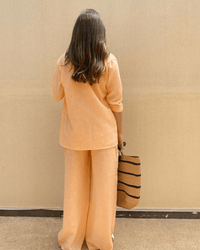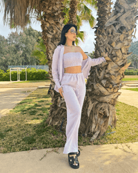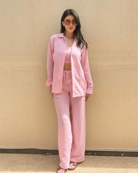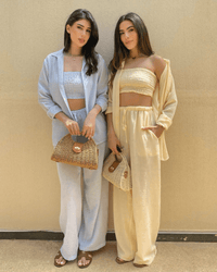 Crafted from our exclusive IvoryTone linen blend — soft, breathable, and delicately woven with hints of natural color — the Sienna Set brings calm elegance to your everyday. This 3-piece set includes relaxed-fit pants, a stretchy cropped top, and a button-down shirt for a timeless, effortless look.