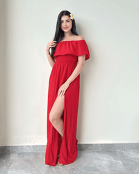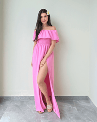 Step into sunshine with our Off-Shoulder Maxi Dress — a dreamy blend of romance and ease.