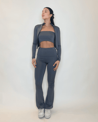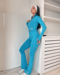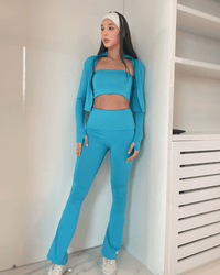 Meet the perfect 3-piece set designed for style and versatility. Featuring wide-leg leggings, a banana-cut crop top, and a matching jacket, this set is made to elevate your everyday look. Whether you're stepping out or lounging in style, its flattering fit and soft fabric make it a must-have.