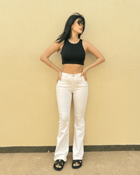 Crisp, flattering, and made to elongate — these white denim boot cut jeans offer a timeless fit with a modern edge. Soft stretch, clean lines, and a silhouette that goes with everything.