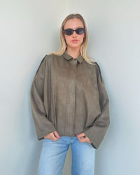 A must-have statement piece for the season. Crafted from soft suede, this bomber jacket adds effortless style and warmth to any look. One size fits S to L — designed for a relaxed, trendy fit.