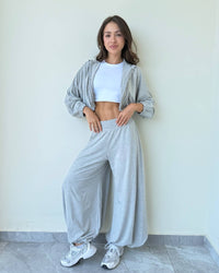 The Lucia Comfy Set is where comfort meets trend. Designed in ultra-soft fabric, it features baggy, relaxed-fit pants paired with a cropped hoodie jacket for the perfect balance of cozy and chic. Whether lounging or stepping out, this set keeps your style effortless.