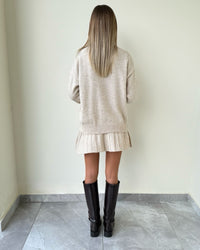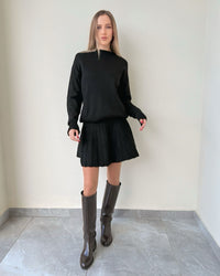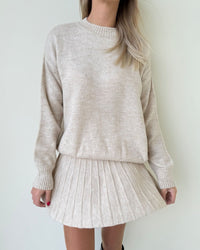 Fit: Cozy sweater top + plated mini skirt