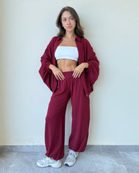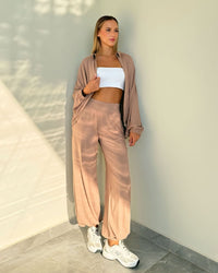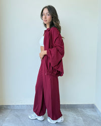 The Selena Comfy Set is your new go-to. Made from soft cotton, it features a long trendy jacket paired with matching baggy pants for that perfect blend of comfort and chic. Whether tied together or worn relaxed, this set makes everyday wear look elevated.