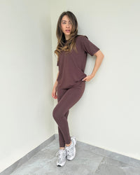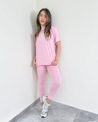Relaxed oversized t-shirt paired with fitted leggings for a clean and effortless everyday look.